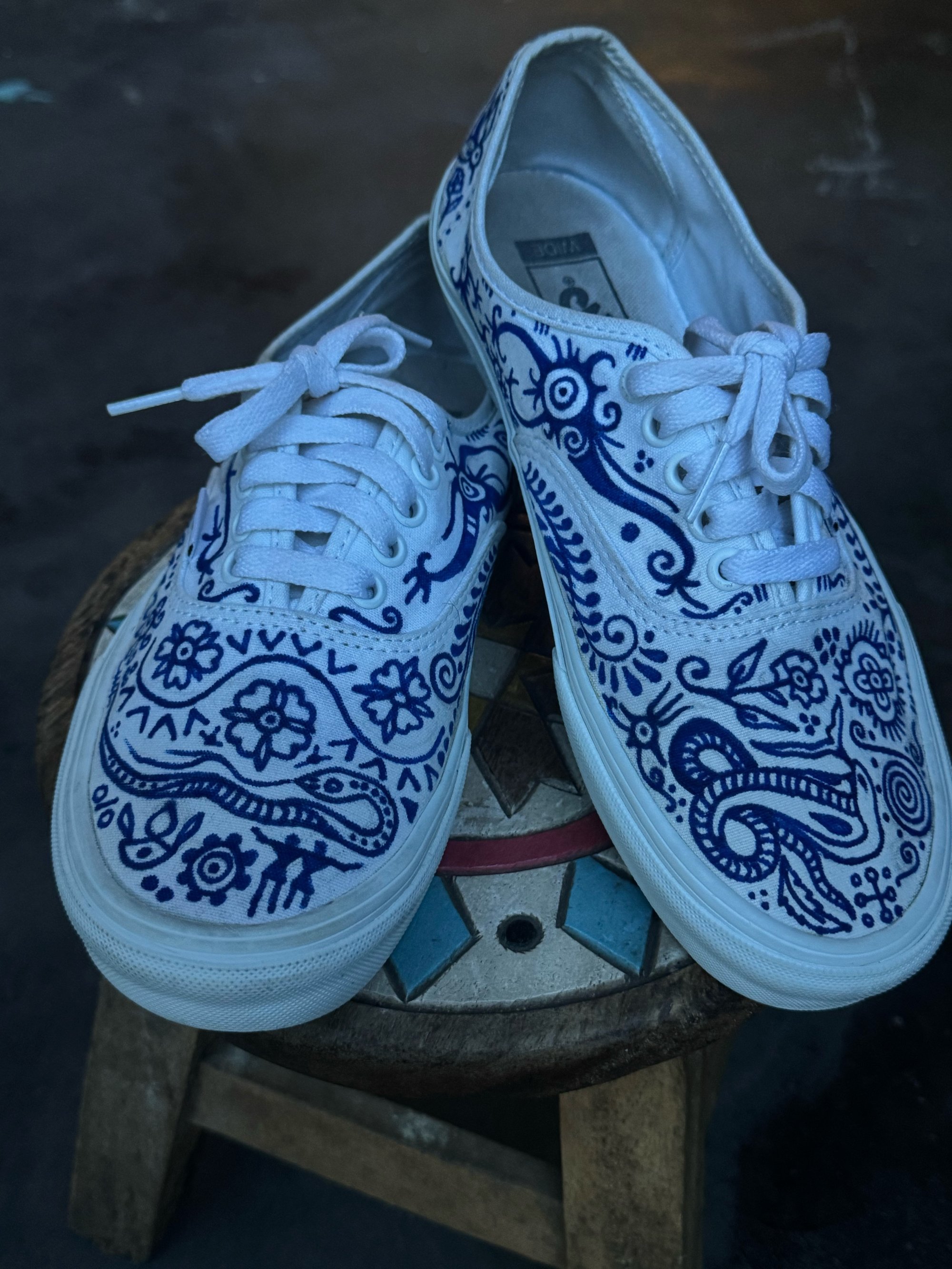 Thrifted pair of white Vans from Chiang Mai.